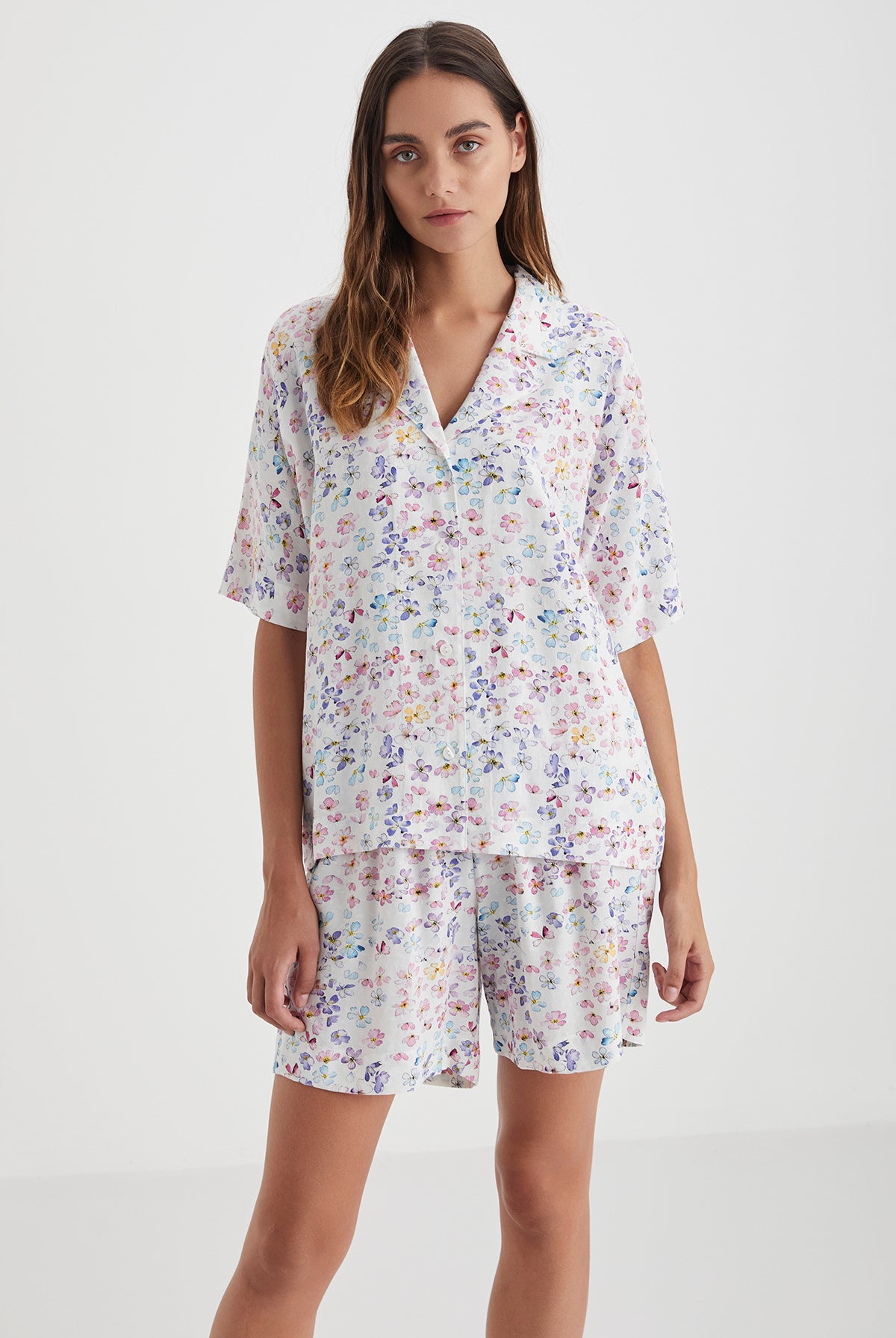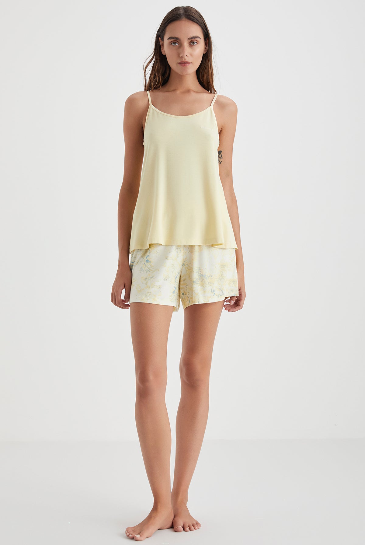 Evde dinlenirken, uyurken ya da keyifli bir hafta sonu sabahında kendinizi rahat ve özel hissetmek istiyorsanız, birbirinden şık şortlu pijama takımı modelleri arasından stilinize en uygun olanı seçebilirsiniz. Göz alıcı renklerden yumuşak tonlara, desenli kumaşlardan düz modellere kadar geniş ürün yelpazemizle hem konfor hem stil elinizin altında!