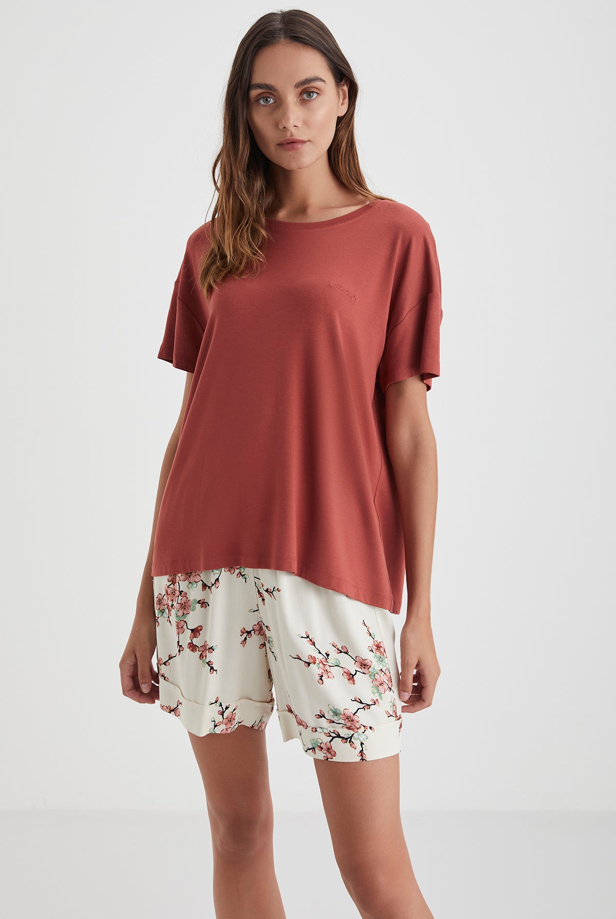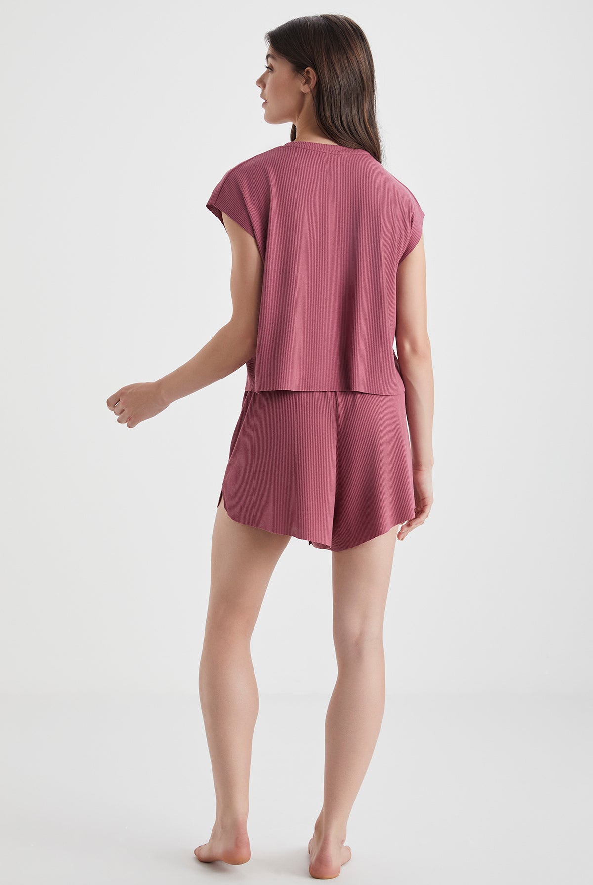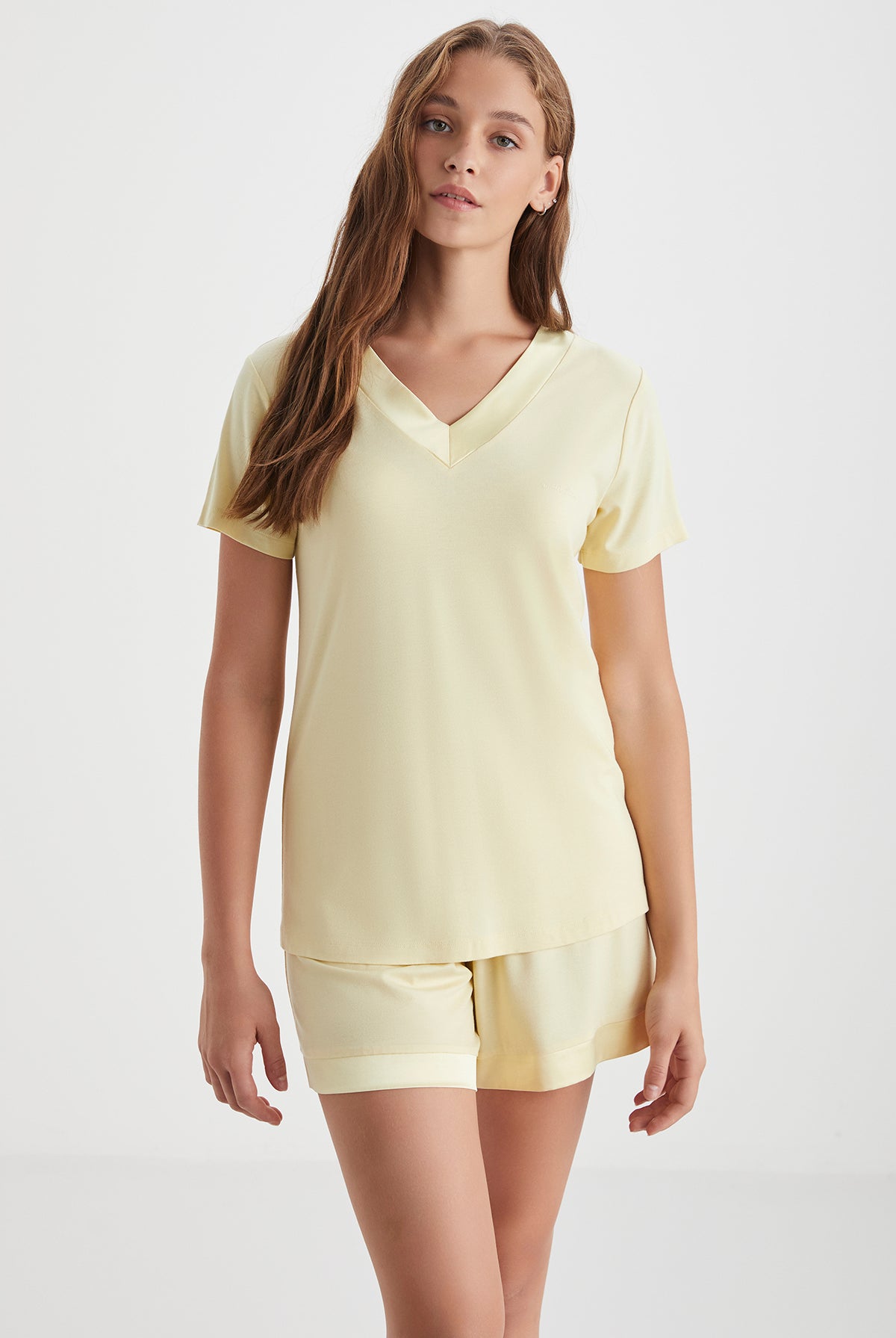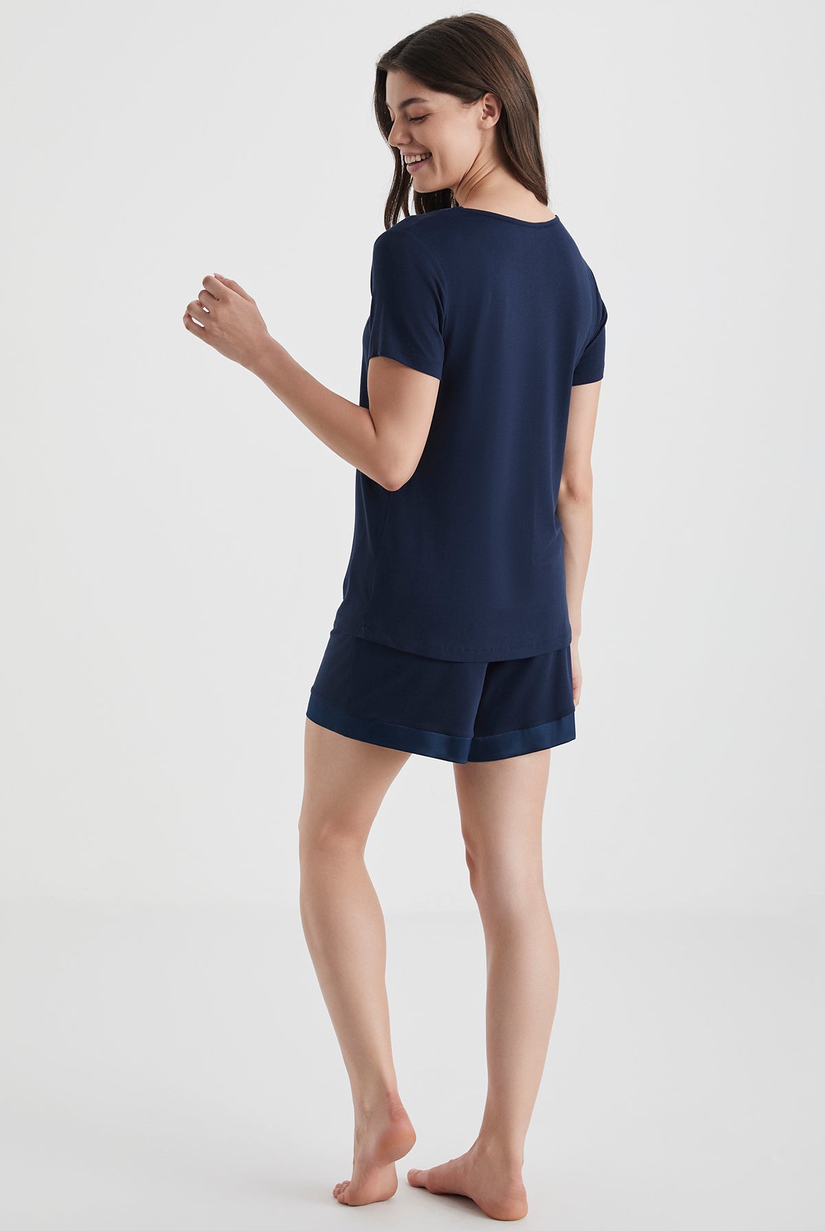Modal kumaşlar, kayın ağacından elde edilen doğal bir elyaf türüdür ve son derece yumuşak, esnek bir dokuya sahiptir. Cilde adeta ipek gibi temas eder ve hafif yapısıyla gün boyu ferah hissettirir. Modal kumaşlı şortlu pijama takımları hem konforu hem de şıklığı bir arada sunar.