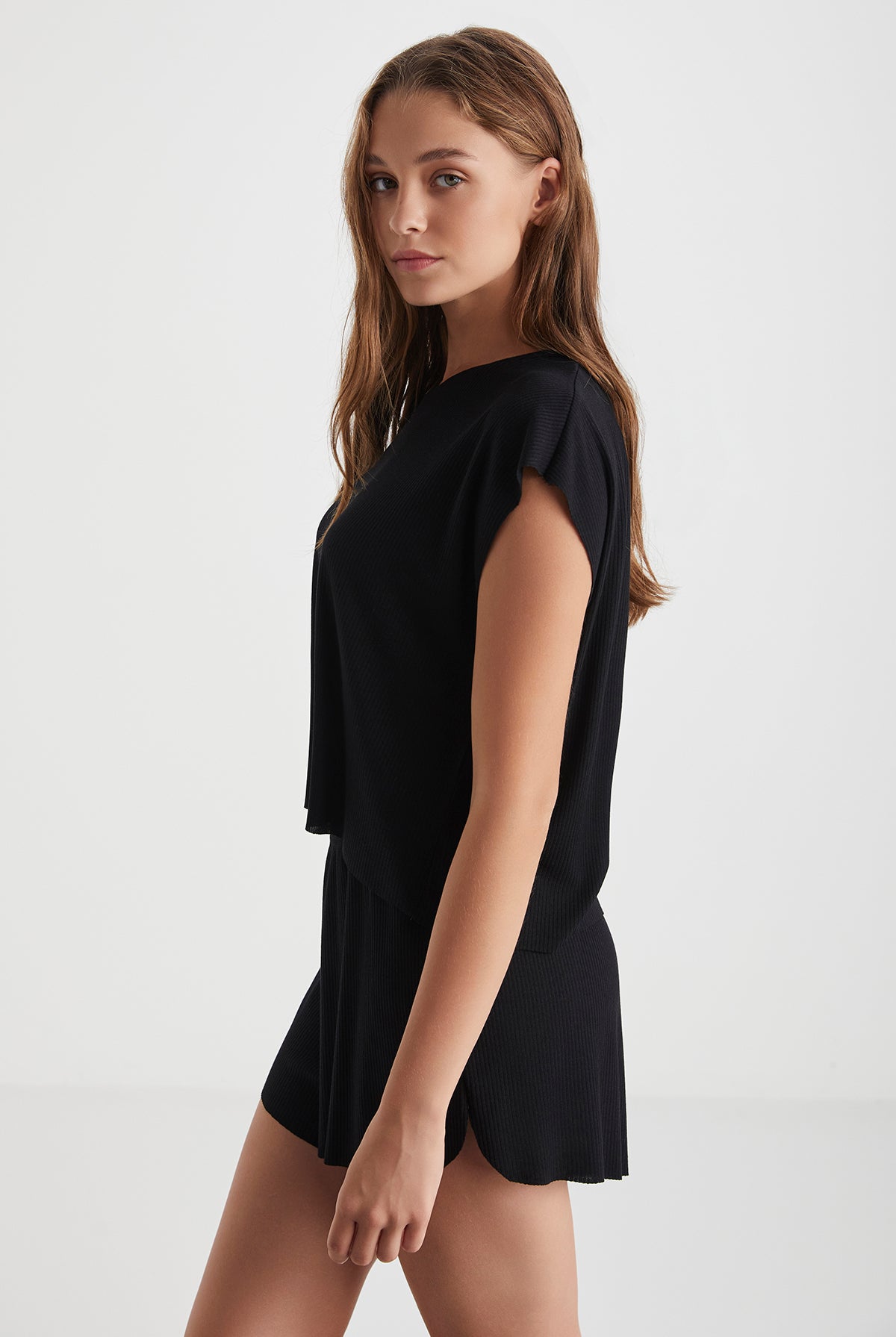 Model çeşitliliği yalnızca kumaşla sınırlı değil; kısa kollu, kolsuz, askılı veya crop üstlerle kombinlenen şortlar farklı kombin seçenekleri sunar. Yüksek bel şortlar vücut hatlarını zarifçe vurgularken, lastikli ve bol kesim şortlar gün boyu hareket özgürlüğü sağlar. Oversize üstler daha salaş bir görünüm isteyenler için ideal, sabahlıkla tamamlanan şortlu takımlar ise hem kullanışlı hem de şık bir alternatif oluşturur.
