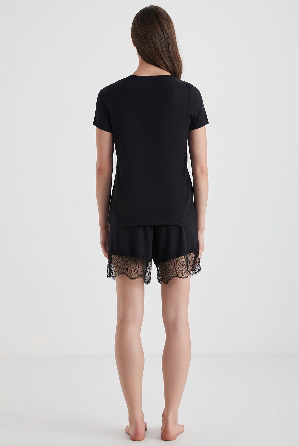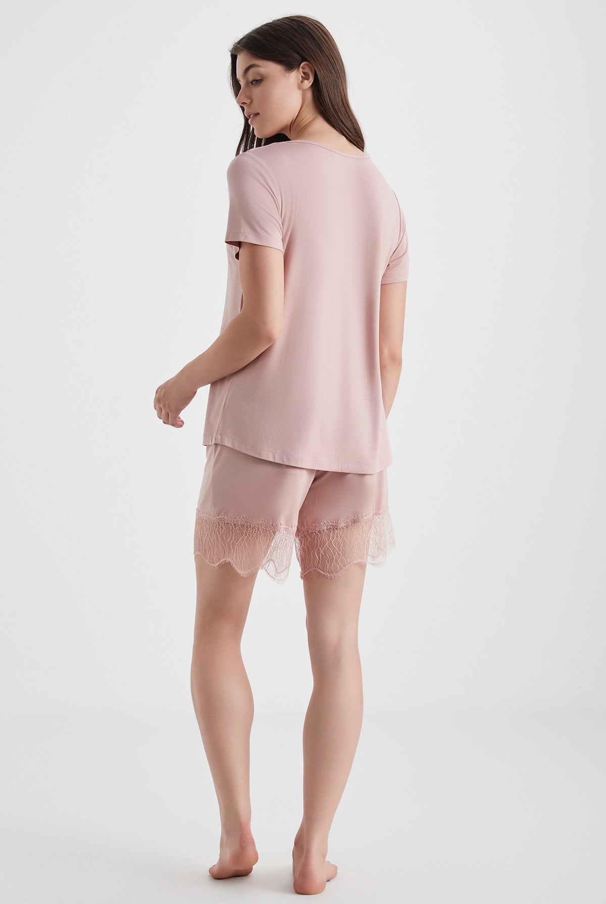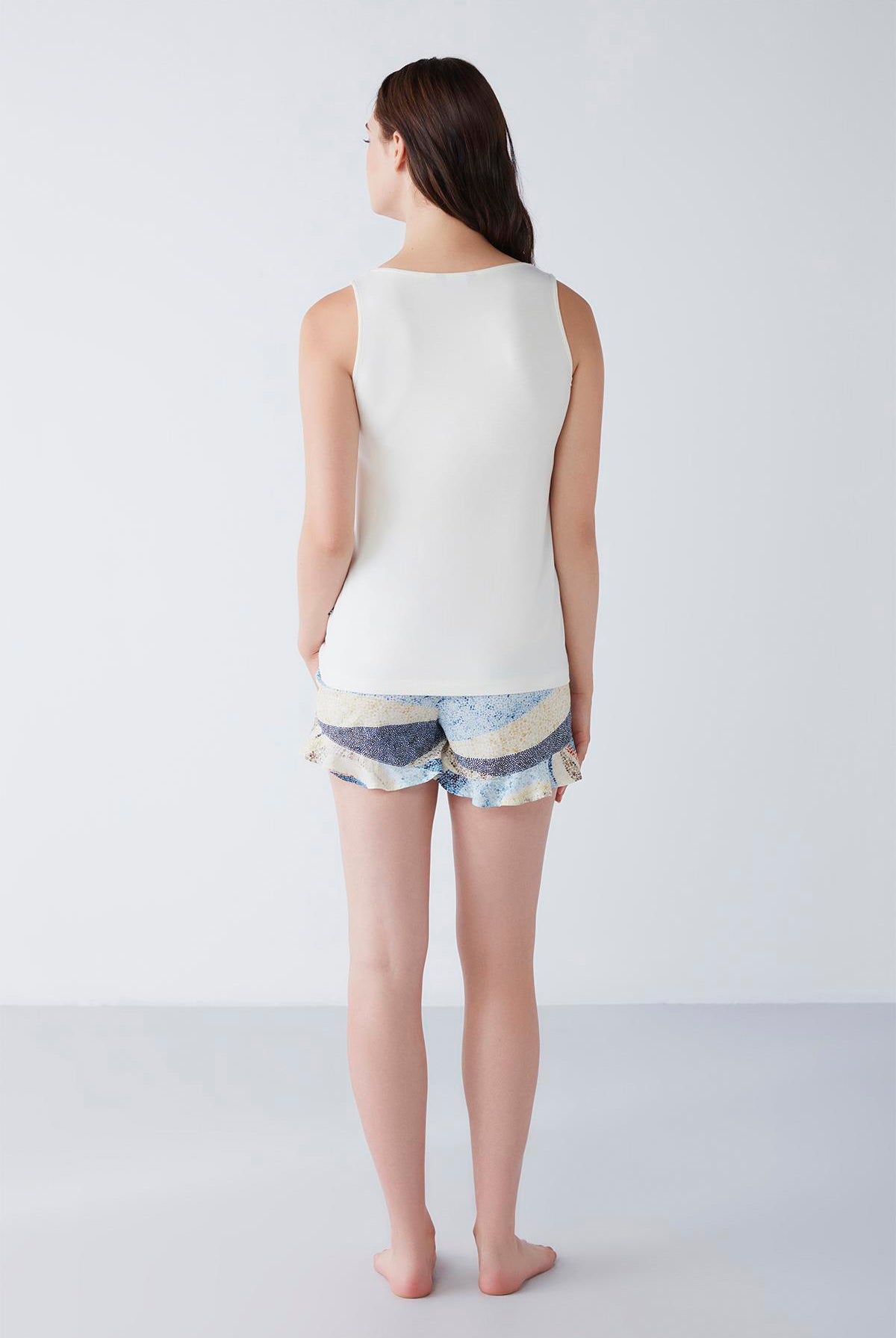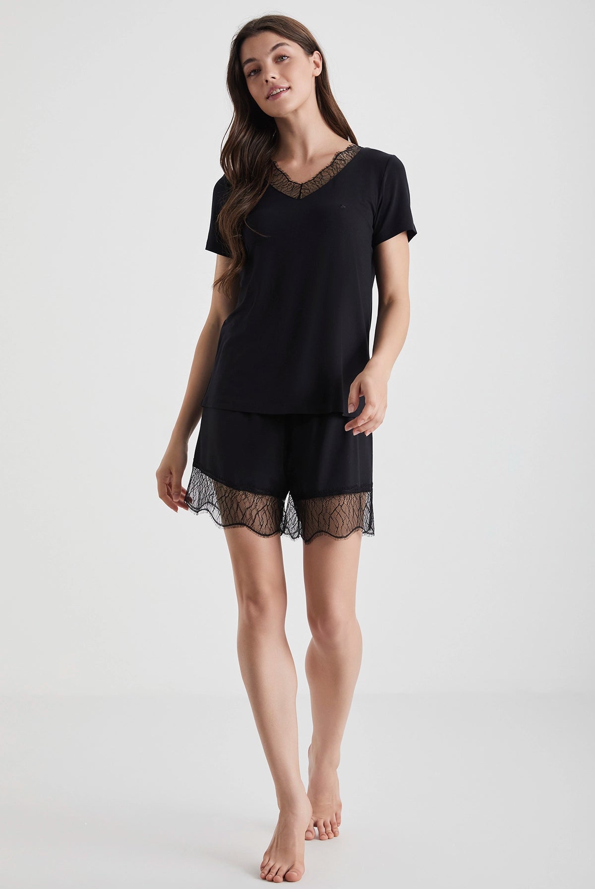 Pamuklu modeller, doğallığı ve terletmeyen yapısıyla yaz aylarının vazgeçilmezi olurken; modal kumaşlar yumuşak dokusuyla ciltle uyum içinde çalışır. Daha zarif bir görünüm arayanlar için saten şortlu takımlar, parlak dokusu ve kaygan yapısıyla hem estetik hem de feminen bir seçenek sunar. Romantik bir tarzdan hoşlananlar için dantel detaylı modeller öne çıkarken, daha sade ve modern çizgiler arayanlara çizgili, geometrik ya da minimal desenli alternatifler sunulmaktadır.