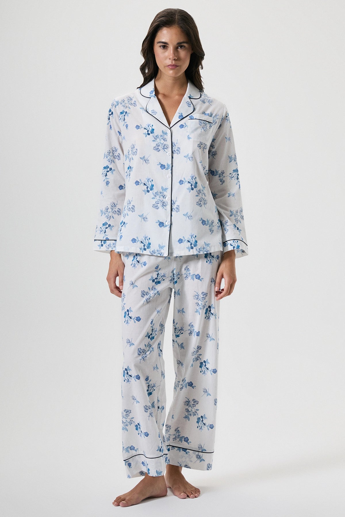 %100 pamuk çiçek desenli pijama takımı