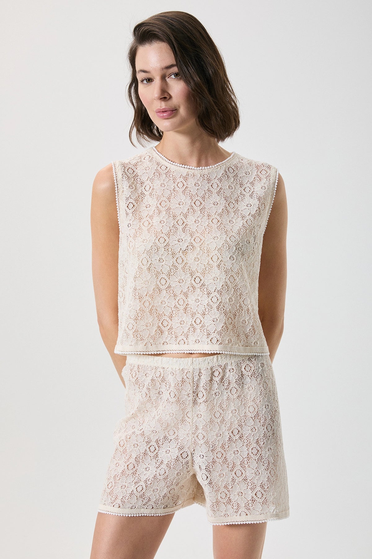 %100 pamuk dantelli şort takım