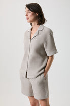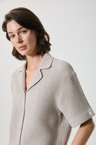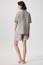 Waffle dokusuyla öne çıkan %100 pamuk gömlek ve şort takım, hafif ve nefes alan yapısıyla gün boyu konfor sunar. Dokulu yüzeyi takıma modern ve düzenli bir görünüm kazandırırken, gömlek formu ve şortun rahat kalıbı sayesinde evde keyifli bir kullanım sağlar. Takım halinde kullanıldığında tek hamlede uyumlu bir kombin oluşturur; dışarıda da zahmetsiz bir stil için ideal bir seçenektir.