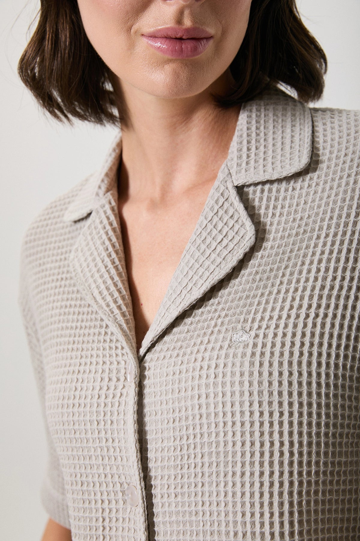 Gömlek: Waffle dokulu görünüm, rahat kesim, pratik kullanım