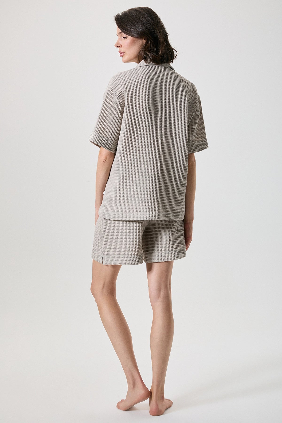 %100 pamuk waffle şortlu takım