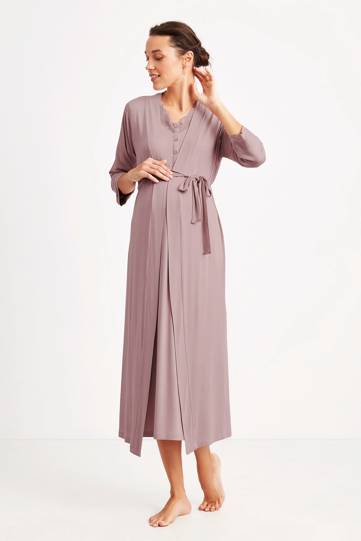 Dantel detaylı hamile sabahlık