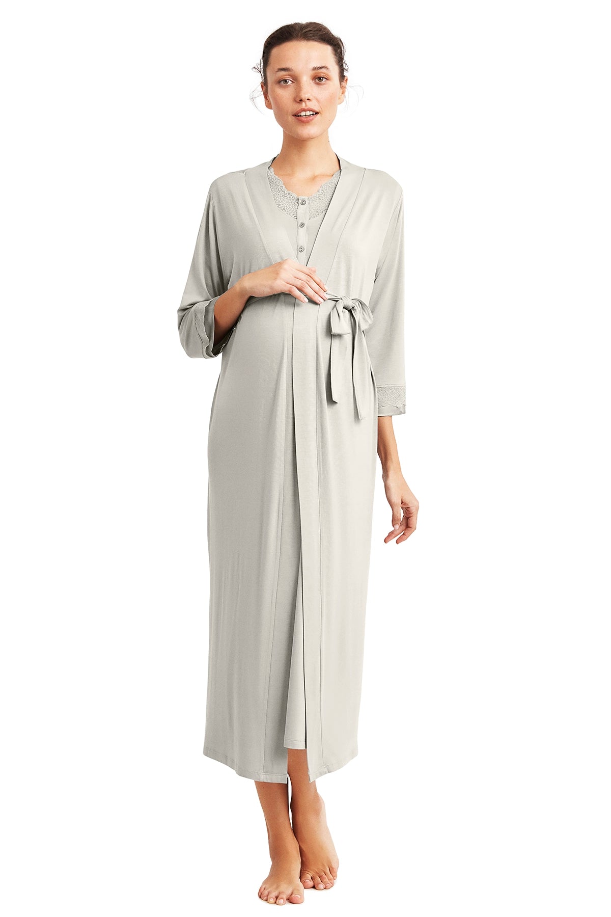 Catherine's hamile sabahlığı kumaşın esnekliği ve kalitesiyle hamilelik ve lohusalık dönemlerinizde rahatlık ile kullanabilirsiniz.