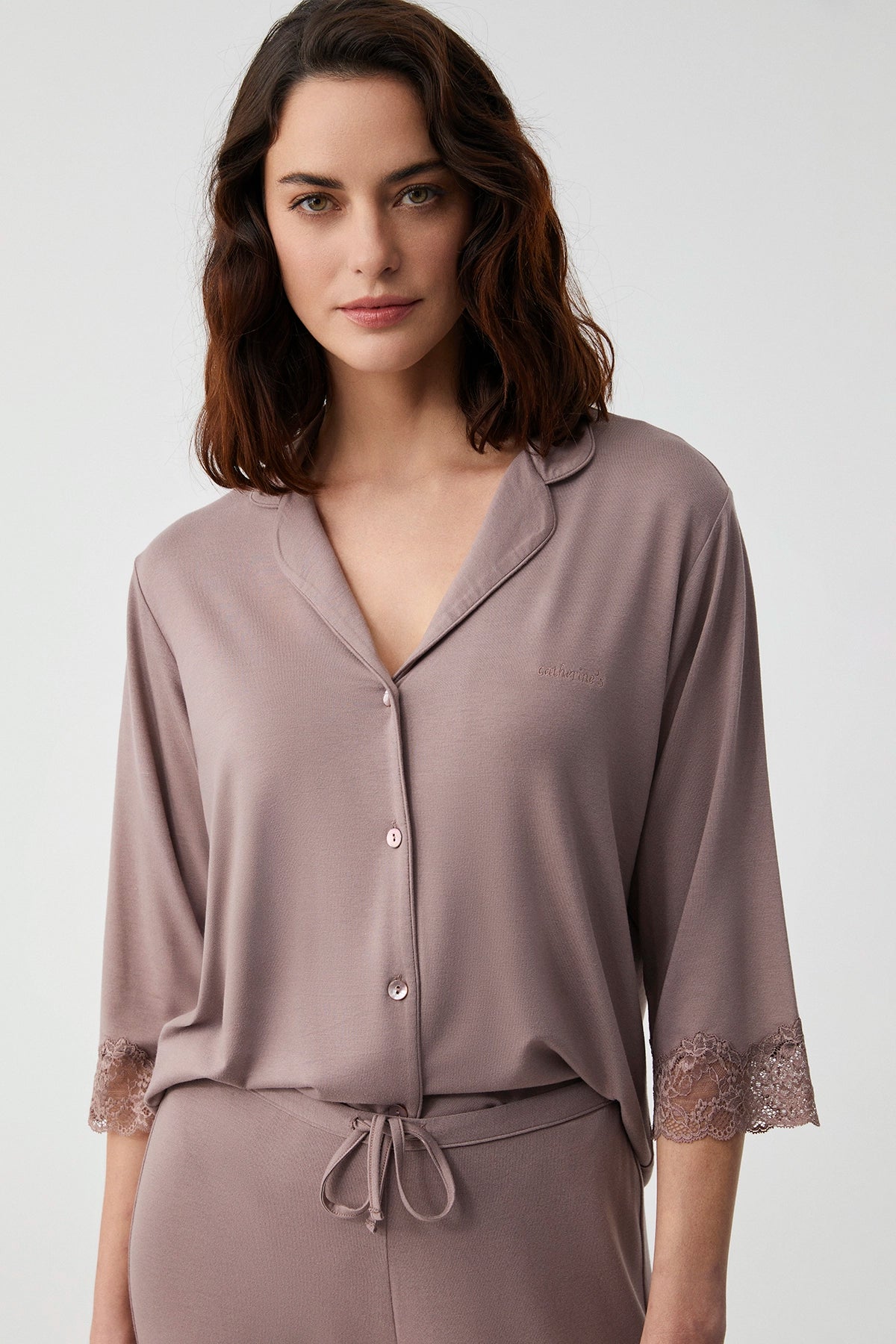 Gömlek takım; cilde yumuşak dokunuş sağlayan, esnek ve nefes alabilen yapısıyla gece boyu konfor sunar. Dayanıklı ve hafif kumaşı sayesinde uzun ömürlü kullanım imkânı verir.