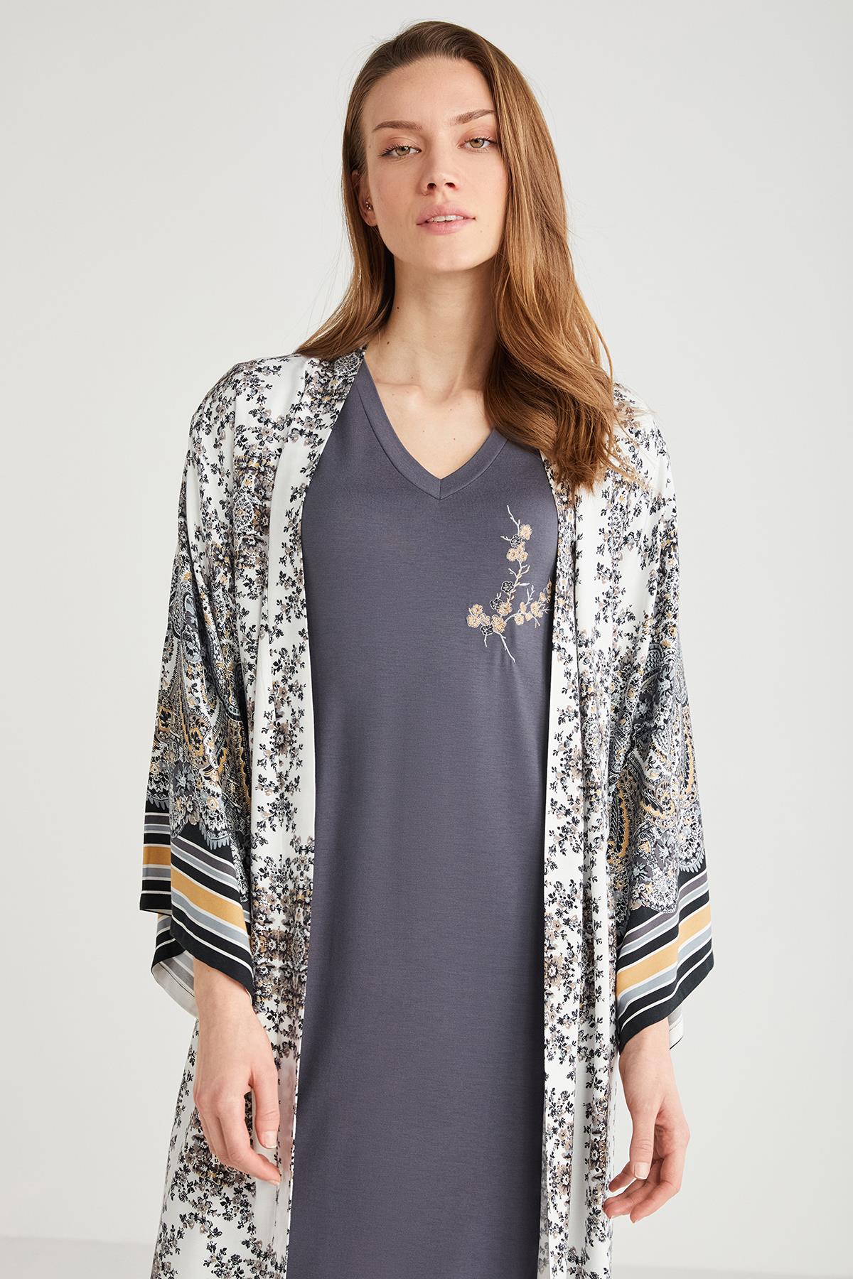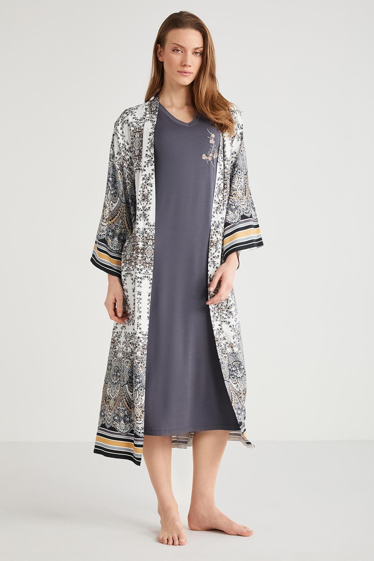 Belden kuşaklı sabahlık takım.