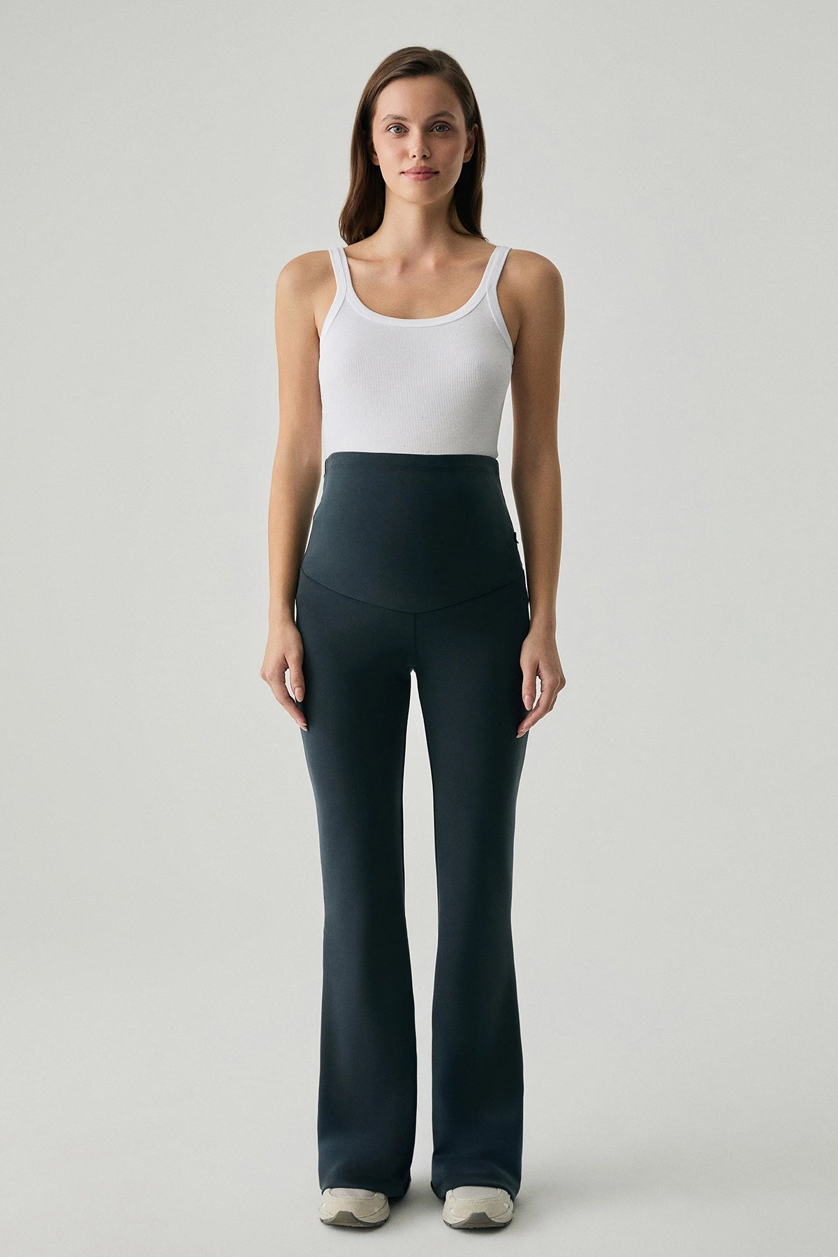 Yüksek belli ispanyol paça tencel hamile pantolonu